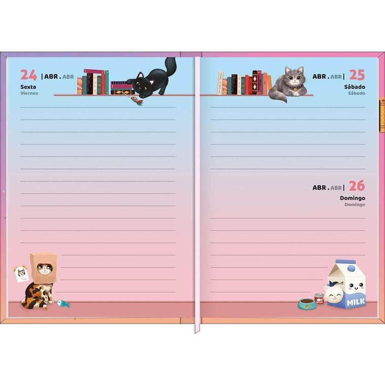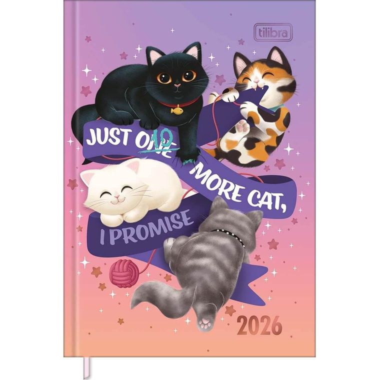Agenda Costurada Petit 10,5 x 14,8 cm Purrfect Cats 2026 - Degradê Rosa e Laranja - Tilibra